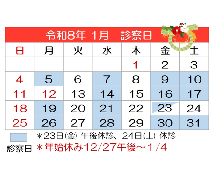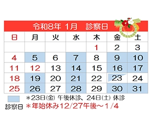 ※12月27日(土)午前は診療いたします。